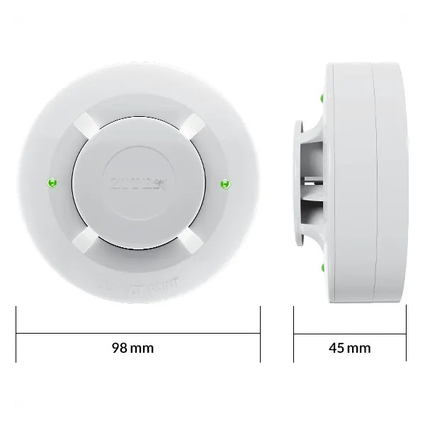 دتکتور حرارتی زیتکس مدل 715 دارای قطر 98 میلیمتر و ارتفاع 45 میلیمتر است. وزن این محصول 124گرم میباشد.