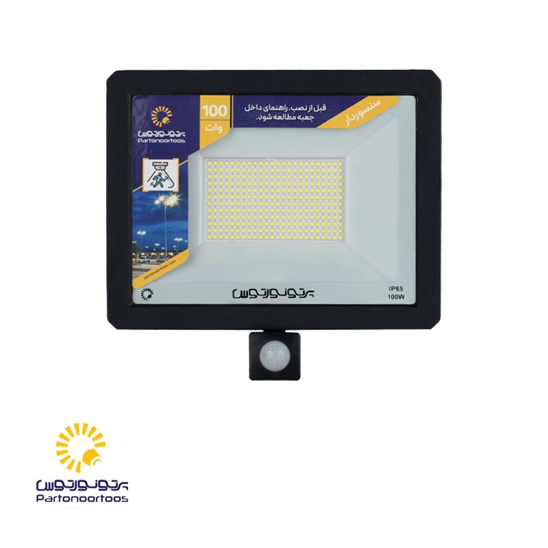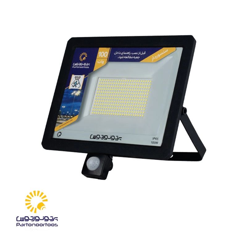 - پروژکتور سنسوردار 100 وات، دارای دو سنسور فتوسل و حرکتی RIP بوده که جنس آنها از پلاستیک و میتواند نور را به شکل خودکار و در صورت تشخیص حرکت، روشن یا خاموش کند.