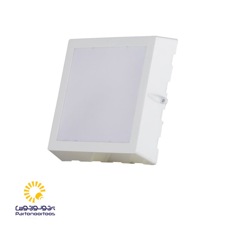 - بدنۀ چراغ سقفی مربعی روکار 12 وات، در رنگ سفید تولید و توزیع میشود.