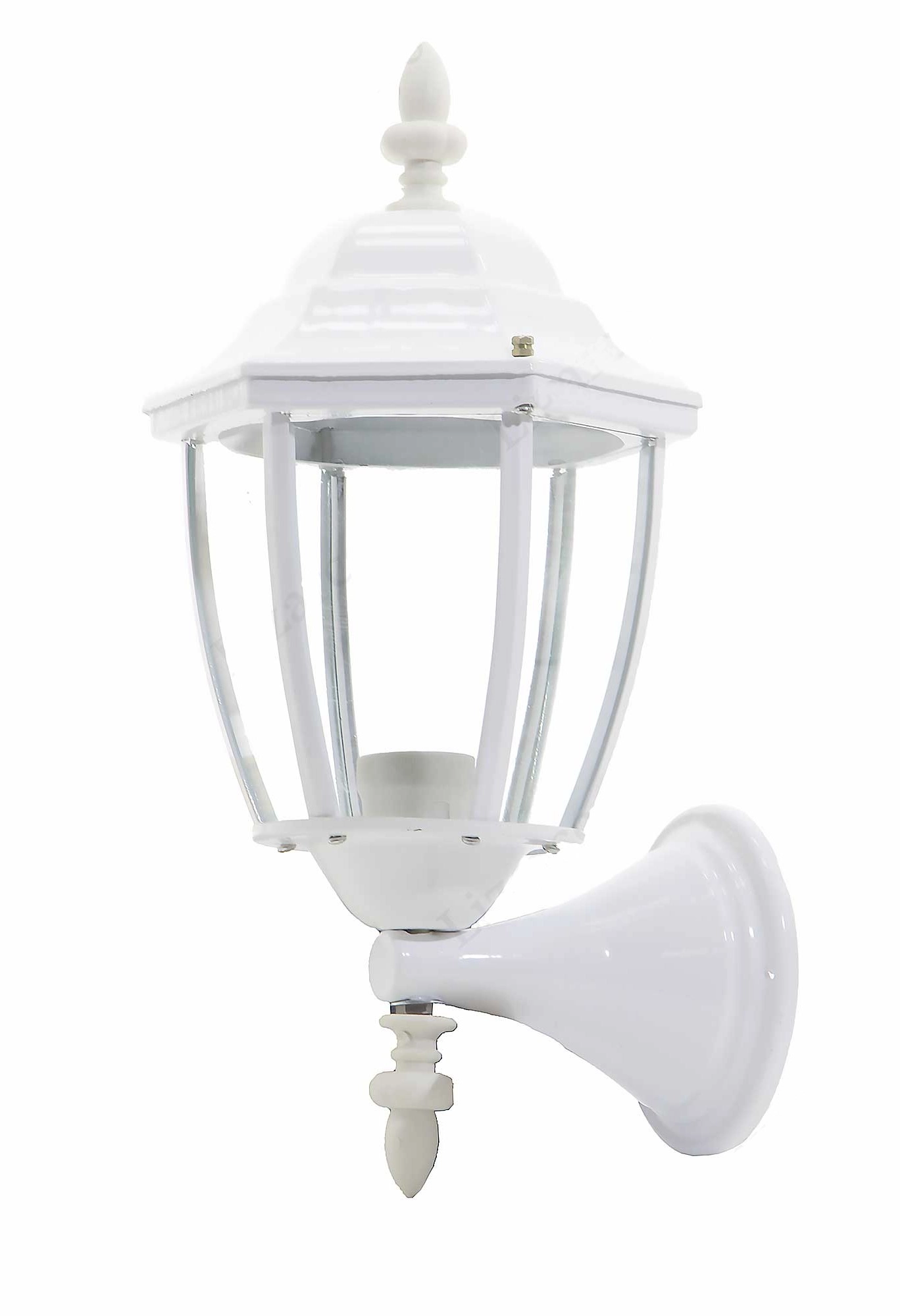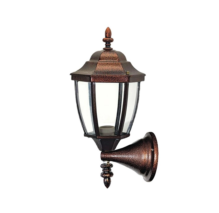 جنس بدنه این چراغ فلز می باشد و جنس حباب آن شیشه است.نوع رنگی که در این محصول به کار رفته است رنگ الکترواستاتیک می باشد که باعث می شود که این محصول برای محیط زیست سالم باشد ( برای اینکه مواد و گازهای سمی در این نوع رنگ وجود ندارد)، ایمنی بیشتری داشته باشد، در زمان صرفه جویی شود ( افزایش سرعت تولید و کاهش مصرف انرژی )،قابل بازیافت دارد و طول عمر قطعه هایی که رنگ شده افزایش یابد. این چراغ دارای سرپیچ E27 می باشد. این چراغ معمولا بر روی دیوار حیاط یا فضای باز نصب می شود که البته شکل ظاهری آن به گونه ای است که هم در شب و هم در روز زیبایی خاصی به محیط می بخشد.