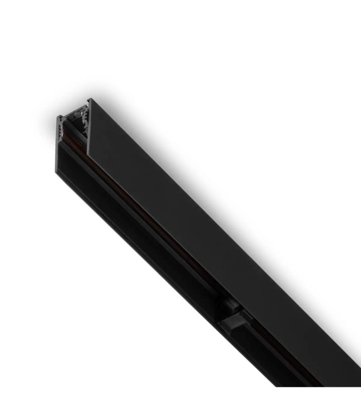 ریل از جنس آلومینیوم اکسترود با پوشش رنگ الکترواستاتیک مشکی مات است و به صورت شاخههای 3متری عرضه میشود. نوع اتصال چراغهای مختلف روی ریل براساس نیروی مغناطیسی است. عرض ریل 25 میلیمتر است. طراحی ریل روکار براساس نصب روکار و آویز در نظر گرفته شده است. شیار قسمت بالایی ریل اتصال به تجهیزات بکسل آویز را فراهم میکند. اتصالات به صورت مستقیم و زوایای مختلف، محدودیت اجرایی برای طراحیهای مختلف را از بین برده است.